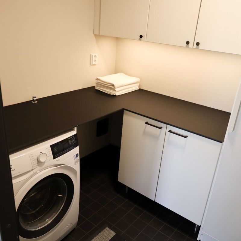 - Kodinhoitohuone, jossa pyykinpesukone ja kuivauskaappi.